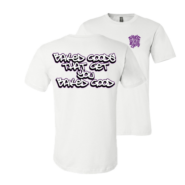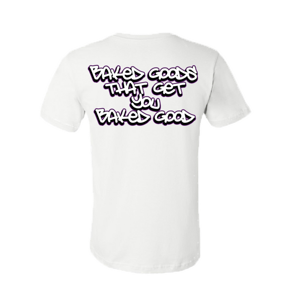 Wake n Bakery Baked Goods That Get You Baked Good Short Sleeve Unisex Tee, F&B White