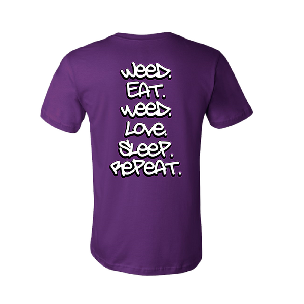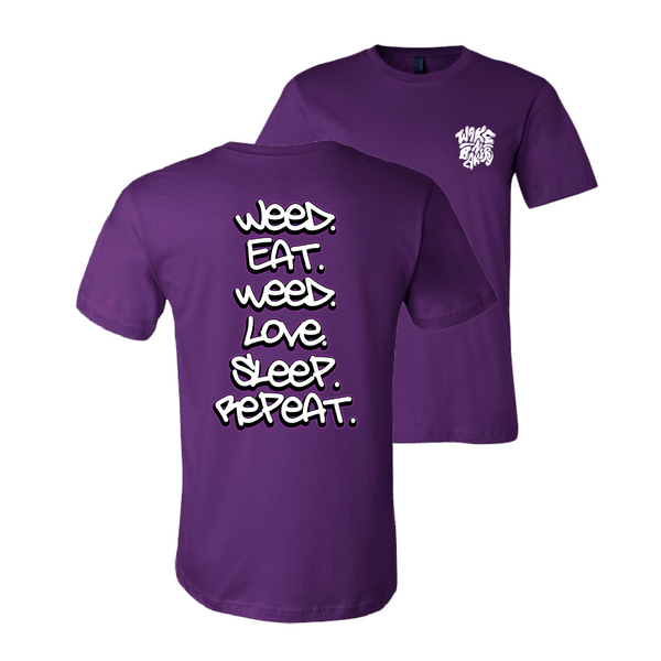 Wake n Bakery Eat Weed Love Sleep Repeat Short Sleeve Unisex Tee, F&B Purple