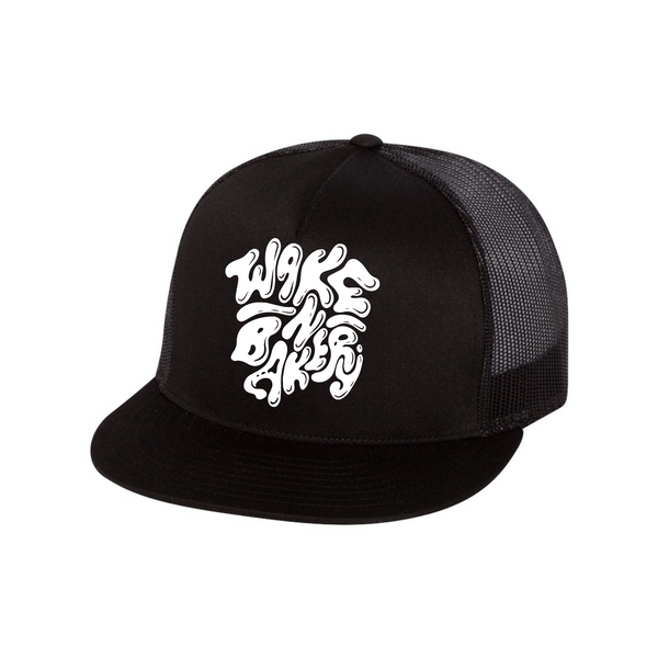 Wake n Bakery Flat Bill Trucker Cap - Black