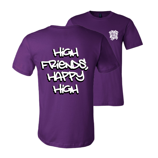 Wake n Bakery High Friends Happy High Short Sleeve Unisex Tee, F&B Purple